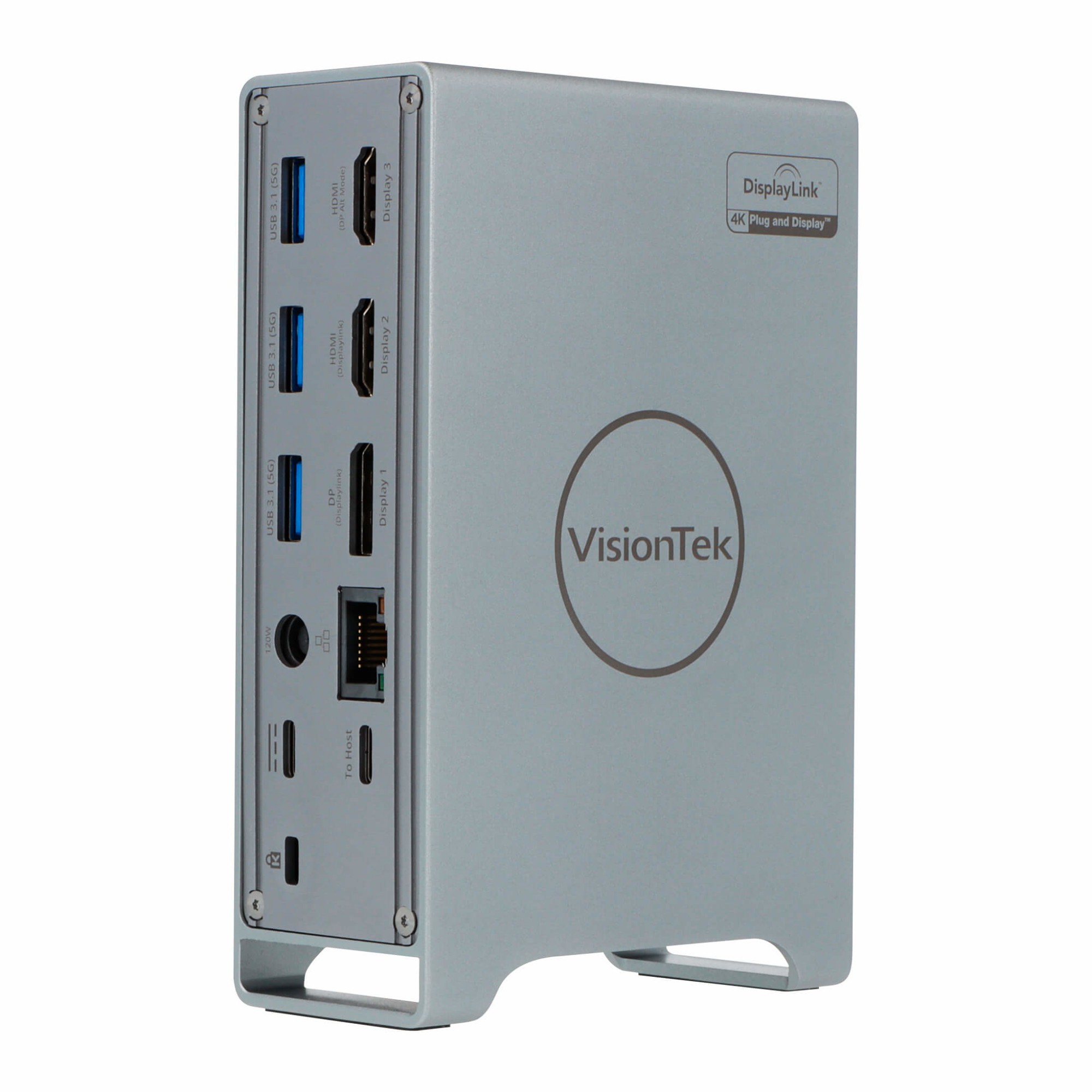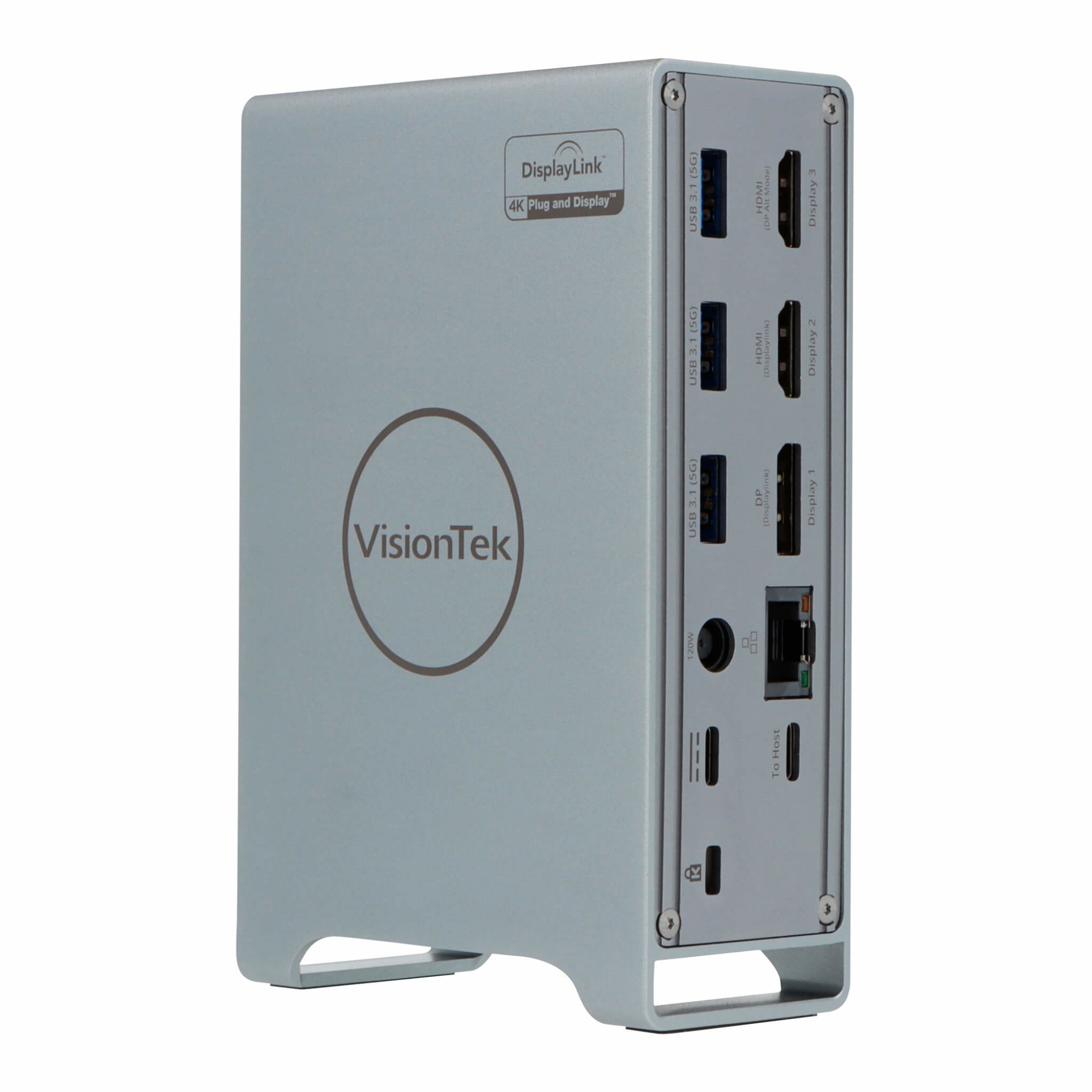 The VisionTek VT7100 Triple Display 4K Docking Station with 100W Power Delivery allows you to easily connect your Windows™, Mac™ or Chrome™ laptop up to three 4K displays and up to 8 accessories and peripherals through a single USB connection.