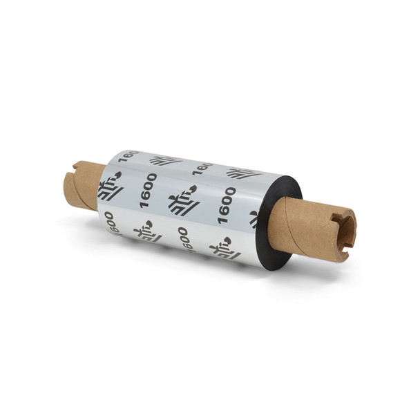 A standard thermal transfer wax ribbon for printing high-quality, durable bar codes on coated paper and synthetic label stock. This Zebra 1600 wax ribbon can print at speeds up to 10" per second.