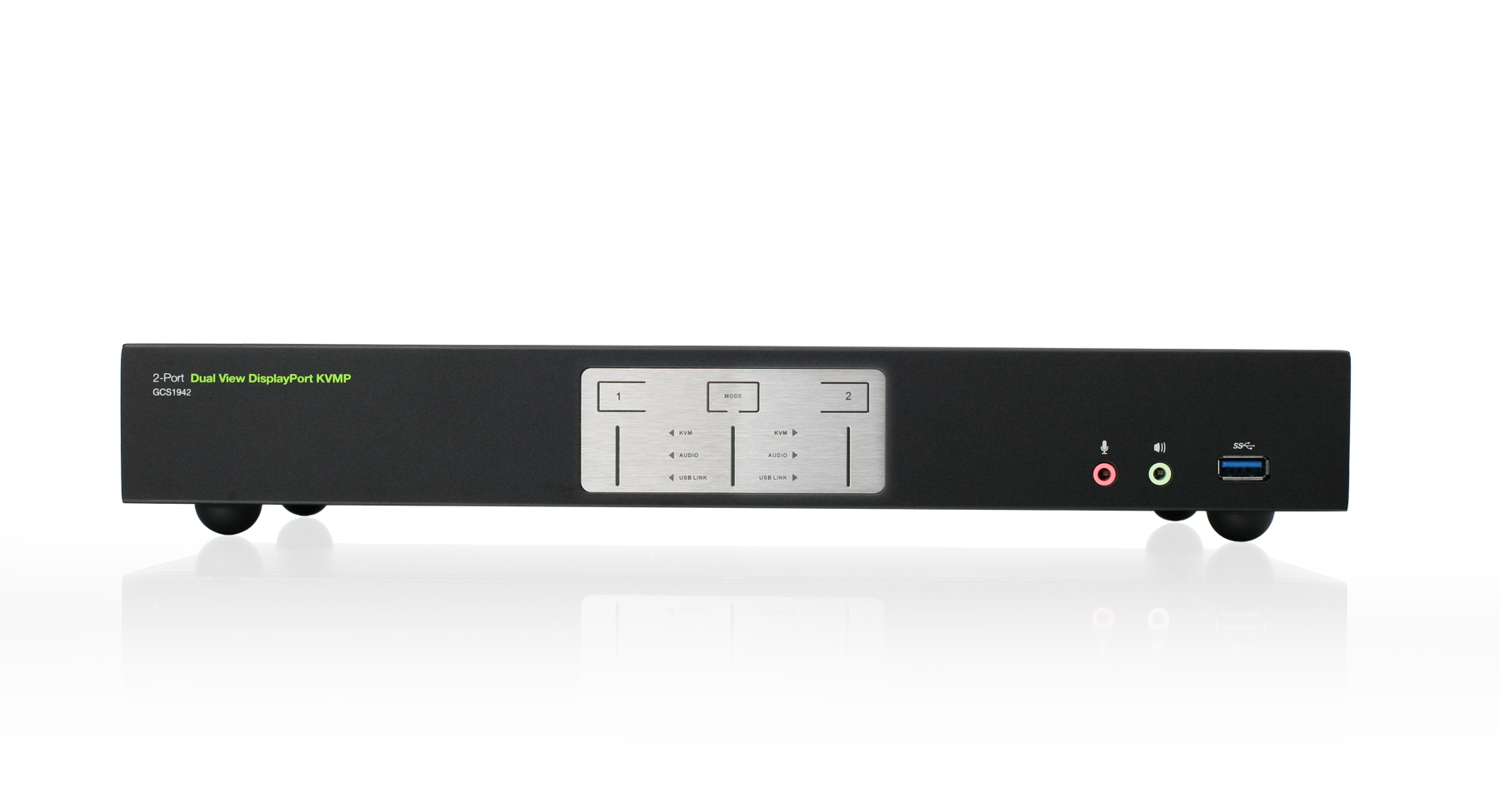 Join two 4K Cinema DisplayPort monitors to your premium desktop or laptop to experience superior screen, image, and video quality. The Dual View DisplayPort KVMP delivers a 4K resolution standard of 4096 x 2160 at a frame rate of 60Hz.